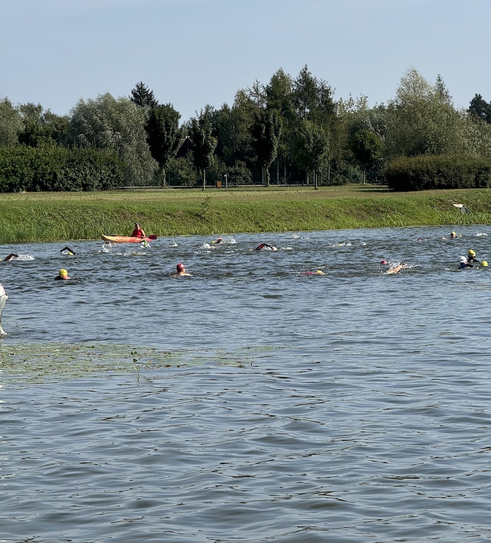 Chciałem pokonać cały dystans kraulem, z którym miałem problemy. Oczywiście zawsze miałem w zanadrzu “żabkę” jako plan awaryjny. Zresztą na triathlonie widziałem, że sporo osób płynie tym stylem nawet na większych dystansach. W regulaminie zawodów, w których startowałem, nie ma sprecyzowanego konkretnego stylu, w jakim trzeba przepłynąć dystans. Trzeba się zmieścić jedynie w limicie czasu (na 1/8 IM było to 30 minut), więc nawet początkujący pływak jest w stanie to zrobić.
