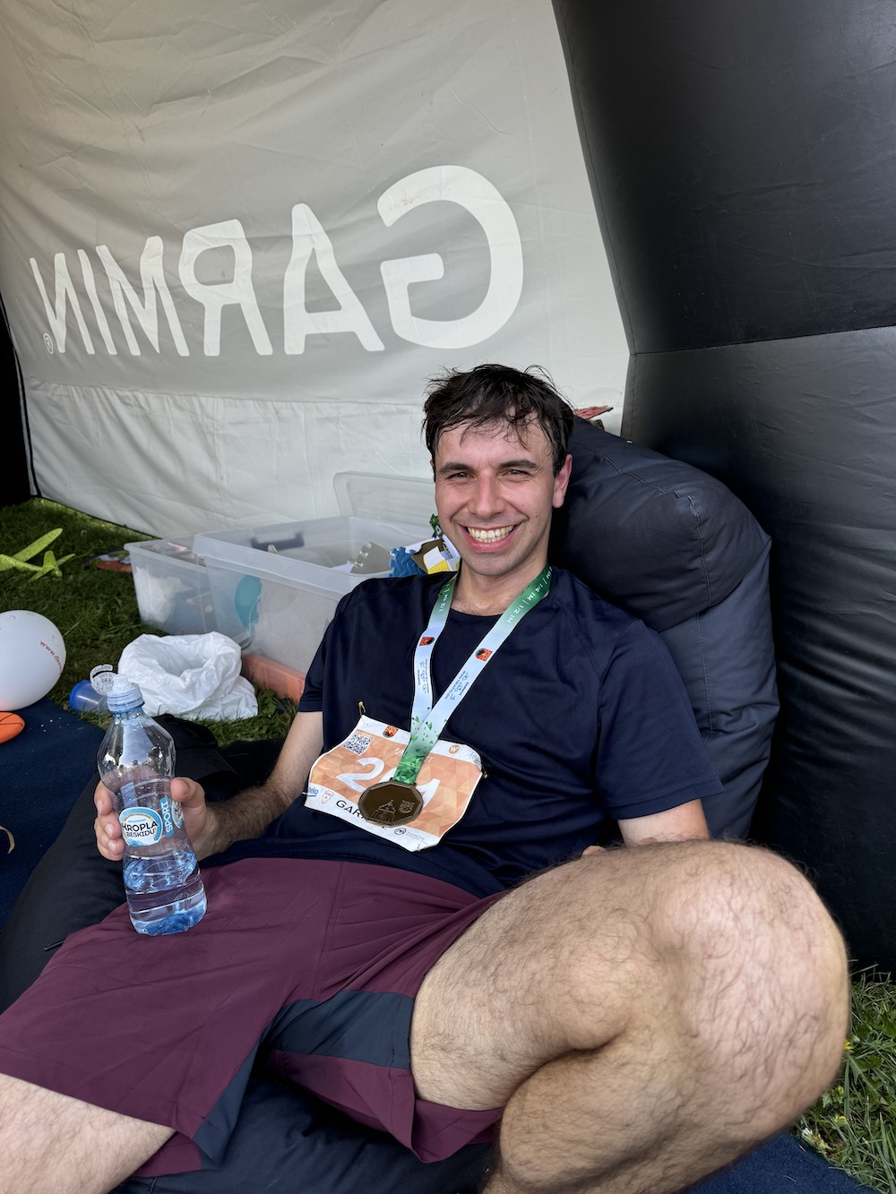 Tak wygląda szczęśliwy, ale zmęczony człowiek po ukończeniu pierwszego triathlonu.